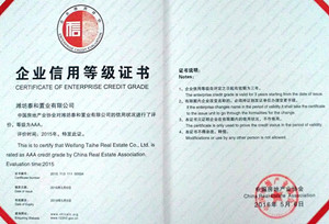 &On June 24, 2016, China real estate credit enterprise award ceremony was held in Changzhou. 40 real estate enterprises including Changda real estate Weifang Taihe Real Estate Co., Ltd. were awarded the title of "national real estate AAA credit enterprise". &The national real estate industry credit evaluation is organized by China Real Estate Association and China Real Estate Research Association. It is the only authoritative enterprise credit rating certification in the national real estate industry. It is reported that the real estate industry credit rating adopts the automatic declaration of real estate enterprises, the field evaluation of the third-party evaluation agency, and the expert group makes a comprehensive evaluation on the objective credit ability of the enterprise, the operation credit status of the enterprise, the performance of social responsibility credit of the enterprise and the future social credit ability through data review, on-site questions and real estate investigation. After the strict credit assessment, only those units that are recognized as A-level or above by the real estate industry association of the region where they are located are qualified to apply for the national credit rating. &Taihe company will continue to adhere to the enterprise tenet of "reputation, quality, service and efficiency", further establish a good social image of honesty and trustworthiness, and make positive contributions to the re development of Changda real estate. ![]() |