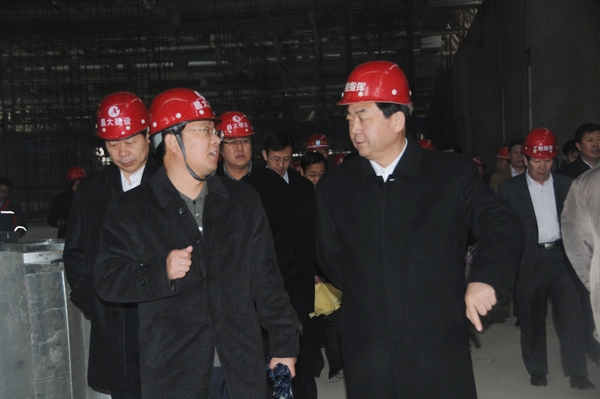 3月1日下午,濰坊市委書記許立全在市領(lǐng)導(dǎo)劉德成、夏芳晨、王樹華及市直有關(guān)部門和濰城區(qū)主要負(fù)責(zé)同志陪同下,冒雨視察了集團(tuán)公司承建的魯臺(tái)經(jīng)貿(mào)會(huì)展中心工程。集團(tuán)公司董事長(zhǎng)徐鵬強(qiáng)、會(huì)展中心現(xiàn)場(chǎng)總指揮孫孔喜全程陪同視察。