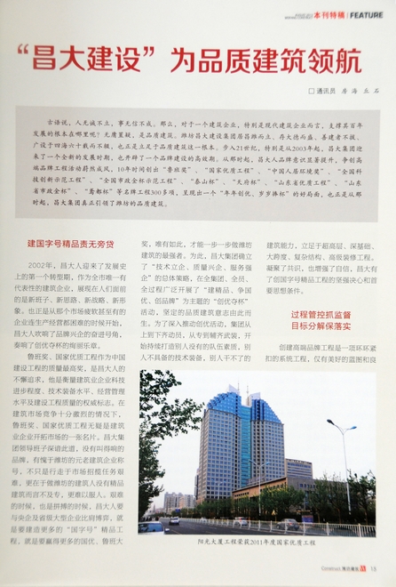 2013年度“兩報(bào)一刊”刊登昌大建設(shè)篇