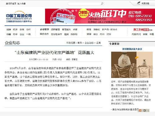 “山東省建筑產(chǎn)業(yè)現(xiàn)代化生產(chǎn)基地”花落昌大——中國工程建設(shè)網(wǎng)“企業(yè)動(dòng)態(tài)”2014.9.28