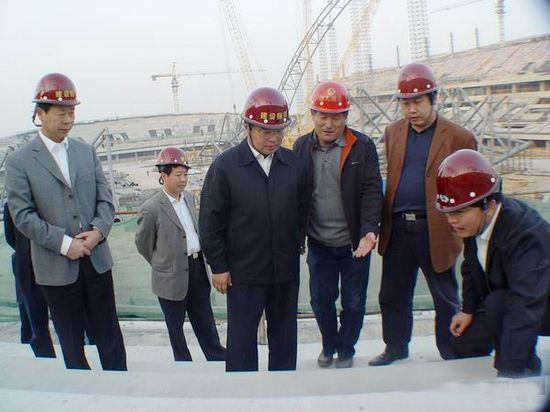 濰坊市委書記張新起視察昌大建設(shè)集團(tuán)建設(shè)中的奧體中心工程