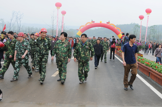 5月12日,由集團(tuán)公司第二分公司援建的北川新縣城安昌河西羌北橋工程舉行了隆重的竣工通車儀式。濰坊市委常委、副市長(zhǎng)、山東省援川前方總指揮徐振溪,北川新縣城工程建設(shè)總指揮王綿生,北川縣副縣長(zhǎng)荊大中,濰坊市援川前方總指揮桑福嶺等領(lǐng)導(dǎo),參加援川的濰坊各方面代表、當(dāng)?shù)厝罕娊顺鱿私裉斓耐ㄜ噧x式。集團(tuán)公司總經(jīng)理朱九洲及參加援建的有關(guān)分公司經(jīng)理出席了今天的通車儀式。 ![]() 總經(jīng)理朱九洲(前排左四)與援建人員共享援建成果 ![]() 首個(gè)通過大橋的車輛