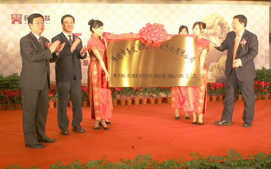 1月22日上午,由集團(tuán)公司控股設(shè)立的濰坊市奎文區(qū)民興小額貸款有限公司,在濰坊國(guó)際金融大廈舉行了隆重的開業(yè)儀式。參加開業(yè)慶典儀式的有山東省財(cái)政廳副廳長(zhǎng)龐敦之及民生銀行山東省分行行長(zhǎng)馬琳,濰坊市人民政府副市長(zhǎng)夏芳晨及市金融辦、市財(cái)政局、市銀監(jiān)局、市人民銀行等市直單位、部門負(fù)責(zé)人,奎文區(qū)委副書記、區(qū)長(zhǎng)李輝,副區(qū)長(zhǎng)賈平及奎文區(qū)金融辦負(fù)責(zé)人,市工商銀行、中國(guó)銀行、交通銀行、農(nóng)信聯(lián)社、中信銀行、招商銀行、農(nóng)業(yè)銀行、建設(shè)銀行、濰坊銀行、華夏銀行、民生銀行、浦發(fā)銀行等市銀行系統(tǒng)負(fù)責(zé)人,駐奎文區(qū)的金融機(jī)構(gòu)中國(guó)銀行、工商銀行、建設(shè)銀行、濰坊商行、農(nóng)業(yè)銀行、新華路農(nóng)信聯(lián)社等負(fù)責(zé)人,泰華集團(tuán)、博悅地產(chǎn)、東方鋼管、中百集團(tuán)等集團(tuán)公司重要客戶主要負(fù)責(zé)人,華和擔(dān)保公司、巨鑫擔(dān)保公司、水建總公司、恒泰擔(dān)保公司、泰翔商貿(mào)公司、奇正商務(wù)咨詢公司、博揚(yáng)投資咨詢公司、吾愛設(shè)計(jì)有限公司、南京龍?bào)词癁H坊分公司、速比達(dá)連鎖汽修總經(jīng)理等重要相關(guān)客戶,濰坊市建設(shè)局局長(zhǎng)李廣東及局領(lǐng)導(dǎo)班子全體、局機(jī)關(guān)各科室主要負(fù)責(zé)人、局屬各單位主要負(fù)責(zé)人,集團(tuán)公司董事長(zhǎng)、民興小額貸款公司董事長(zhǎng)徐鵬強(qiáng),民興小額貸款公司股東單位負(fù)責(zé)人,集團(tuán)公司高管層領(lǐng)導(dǎo)滕忠斌、李坤明、姜建魯、穆乃杰、張學(xué)智、閆鵬,總經(jīng)理助理張修雙、譚瑞明,總部部門負(fù)責(zé)人、各基層單位(子公司)經(jīng)理書記共計(jì)170余人參加了開業(yè)慶典儀式。 ![]() 市金融辦主任李傳順宣讀省金融辦同意公司設(shè)立方案的批復(fù) ![]() 董事長(zhǎng)徐鵬強(qiáng)匯報(bào)公司籌建情況 ![]() 奎文區(qū)區(qū)委副書記、區(qū)長(zhǎng)李輝致辭 ![]() 濰坊市副市長(zhǎng)夏芳晨講話 ![]() 省財(cái)政廳廳長(zhǎng)龐敦之、民生銀行省分行行長(zhǎng)馬琳、副市長(zhǎng)夏芳晨揭牌