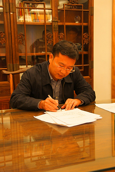 上圖為昌大建設集團董事長徐鵬強在簽署成立文件