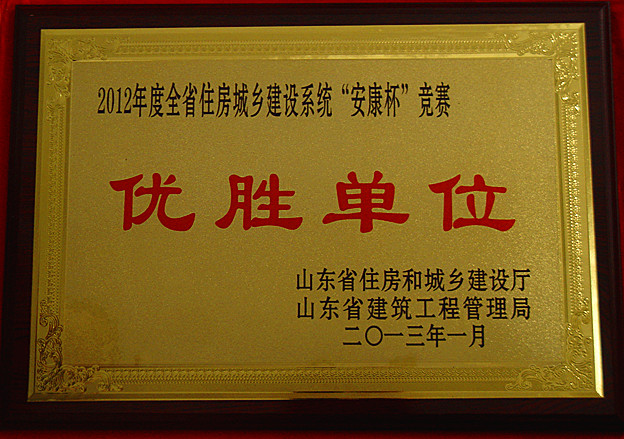 近日,山東省住房和城鄉(xiāng)建設(shè)廳、山東省建筑工程管理局發(fā)布2012年度山東省建設(shè)系統(tǒng)“安康杯”競賽活動(dòng)評選結(jié)果,集團(tuán)公司榮獲2012年度全省住房城鄉(xiāng)建設(shè)系統(tǒng)“安康杯”競賽優(yōu)勝單位稱號。
