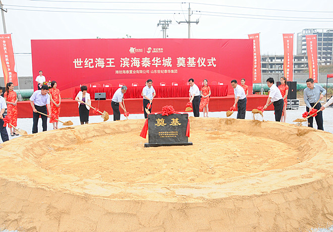 2013年6月1日上午,由濱海區(qū)管委會組織的濱海泰華城、世紀海王項目奠基儀式在濱海區(qū)府前街與海港路交匯處東北角隆重舉行,集團公司總經(jīng)理朱九洲出席奠基儀式并與主席臺領(lǐng)導(dǎo)一同為項目培土奠基。出席儀式的領(lǐng)導(dǎo)還有濰坊市副市長、濱海區(qū)黨工委書記王樹華,濱海區(qū)黨工委副書記、管委會主任張恒道,濱海區(qū)管委會副主任王希光,建設(shè)銀行濰坊分行行長陳鵬,浦發(fā)銀行濰坊分行副行長劉兆建,山東世紀泰華集團董事長劉云江,山東海王集團黨委副書記、副總經(jīng)理崔秀勝等。集團公司第二分公司領(lǐng)導(dǎo)班子成員及員工代表,濱海區(qū)黨工委和管委會有關(guān)人員、項目所在地有關(guān)部門負責人參加了上述活動。