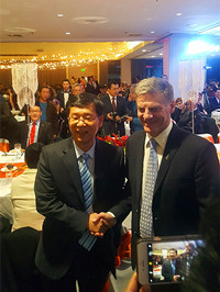 近日,作為山東省經(jīng)貿(mào)洽談代表團(tuán)成員,董事長徐鵬強(qiáng)參加了在新西蘭奧克蘭朗廷酒店舉行的“中國(山東)—新西蘭工商界見面會”,并得到山東省省長龔正的親切接見。 2017年9月9日晚,提前到達(dá)新西蘭的董事長徐鵬強(qiáng),在集團(tuán)副總經(jīng)理兼昌大國際總經(jīng)理劉雁冰的陪同下,到奧克蘭機(jī)場迎接山東省省長龔正為團(tuán)長的山東經(jīng)貿(mào)洽談代表團(tuán)。 9月10日下午,山東省省長龔正接見了徐鵬強(qiáng)、劉雁冰,山東省商務(wù)廳廳長佘春明、副廳長張維克參加接見。龔正省長認(rèn)真聽取了徐鵬強(qiáng)關(guān)于昌大國際新西蘭公司在奧克蘭的發(fā)展情況、遠(yuǎn)景發(fā)展規(guī)劃及參與“一帶一路”新西蘭基礎(chǔ)設(shè)施投資建設(shè)設(shè)想的匯報,充分肯定了集團(tuán)在新西蘭的投資及在兩國間經(jīng)貿(mào)往來方面的工作,并支持集團(tuán)參與新西蘭的基礎(chǔ)設(shè)施投資建設(shè)。 9月11日上午,董事長徐鵬強(qiáng)及昌大國際董事薛金星、總經(jīng)理劉雁冰受邀出席了“中國(山東省)-新西蘭工商界見面會”。 在新西蘭期間,董事長徐鵬強(qiáng)還安排了密集的社會交往和公務(wù)洽談活動。其中, 9月8日上午,與昌大國際董事薛金星、總經(jīng)理劉雁冰一起拜會了中國駐奧克總領(lǐng)事許爾文女士。會談中,總領(lǐng)事對昌大國際在新西蘭的發(fā)展表示高度贊賞,并要求昌大國際再接再厲,在新西蘭樹立一個中國企業(yè)健康發(fā)展的典范。 9月8日晚,新西蘭山東同鄉(xiāng)聯(lián)誼會舉辦慶中秋晚宴。新西蘭政府總理比爾•英格里希、奧克蘭市長菲爾•戈夫、中國駐奧克蘭總領(lǐng)事許爾文受邀出席晚宴。作為名譽(yù)會長,董事長徐鵬強(qiáng)參與了接待工作,并與總理比爾•英格里希先生就新西蘭基礎(chǔ)設(shè)施建設(shè)再次進(jìn)行了深入探討,昌大國際董事薛金星、總經(jīng)理劉雁冰參與會談交流。 9月12日下午,徐鵬強(qiáng)、薛金星、劉雁冰及昌大國際財務(wù)主管楊道乘機(jī)前往新西蘭首都惠靈頓,專程拜訪了中國駐新西蘭大使王魯彤。在匯報昌大建設(shè)集團(tuán)基本情況,昌大國際新西蘭公司在奧克蘭目前的兩個大型地產(chǎn)項目進(jìn)展情況后,董事長徐鵬強(qiáng)提出了集團(tuán)參與新西蘭基礎(chǔ)設(shè)施投資建設(shè)的發(fā)展規(guī)劃,具體工作打算以及目前的進(jìn)展情況。王魯彤大使對昌大國際新西蘭公司在新西蘭投資以及發(fā)展規(guī)劃表示贊許和支持,并允諾協(xié)調(diào)新西蘭政府關(guān)系,對集團(tuán)發(fā)展規(guī)劃的實施提供力所能及的幫助與支持。