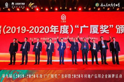2021年4月8日,由中國(guó)房地產(chǎn)業(yè)協(xié)會(huì)、住房和城鄉(xiāng)建設(shè)部住宅產(chǎn)業(yè)化促進(jìn)中心共同主辦的第九屆(2019-2020年度)“廣廈獎(jiǎng)”表彰暨2020年房地產(chǎn)信用企業(yè)頒牌活動(dòng)在廣西南寧隆重舉行。由集團(tuán)匠心筑造的泰和上筑北區(qū)項(xiàng)目獲得的“廣廈獎(jiǎng)”獎(jiǎng)杯由此領(lǐng)回。這是集團(tuán)又一次榮獲房地產(chǎn)業(yè)的最高獎(jiǎng)“廣廈獎(jiǎng)”。廣廈獎(jiǎng),有著“房地產(chǎn)界奧斯卡獎(jiǎng)”的美譽(yù)。作為國(guó)家房地產(chǎn)行業(yè)最權(quán)威的綜合性獎(jiǎng)項(xiàng),每?jī)赡暝u(píng)選一次,與建筑領(lǐng)域“魯班獎(jiǎng)”、設(shè)計(jì)領(lǐng)域“梁思成獎(jiǎng)”齊名,代表著中國(guó)房地產(chǎn)綜合開發(fā)水平的最高榮譽(yù)。據(jù)悉,獲獎(jiǎng)項(xiàng)目必須是規(guī)劃設(shè)計(jì)水平高、環(huán)境好、質(zhì)量?jī)?yōu)、性能好,在推進(jìn)建筑工業(yè)化、綠色低碳和解決群眾住房問題方面能起示范、帶動(dòng)作用,其申報(bào)和評(píng)定有著嚴(yán)格的程序和標(biāo)準(zhǔn)。