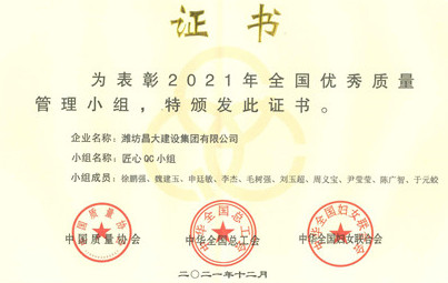 由集團(tuán)機(jī)施公司匠心QC小組編寫的成果《施工升降機(jī)新型電纜臂架的研制》,經(jīng)初賽、復(fù)賽和決賽,在榮獲特等獎后被推薦至中國質(zhì)量協(xié)會代表建筑行業(yè)作進(jìn)一步的競賽交流,該匠心QC小組也被中國質(zhì)量協(xié)會、中華全國總工會、中華全國婦女聯(lián)合會評選為2021年全國優(yōu)秀質(zhì)量管理小組,代表了建筑行業(yè)質(zhì)量管理小組活動的最高水平。