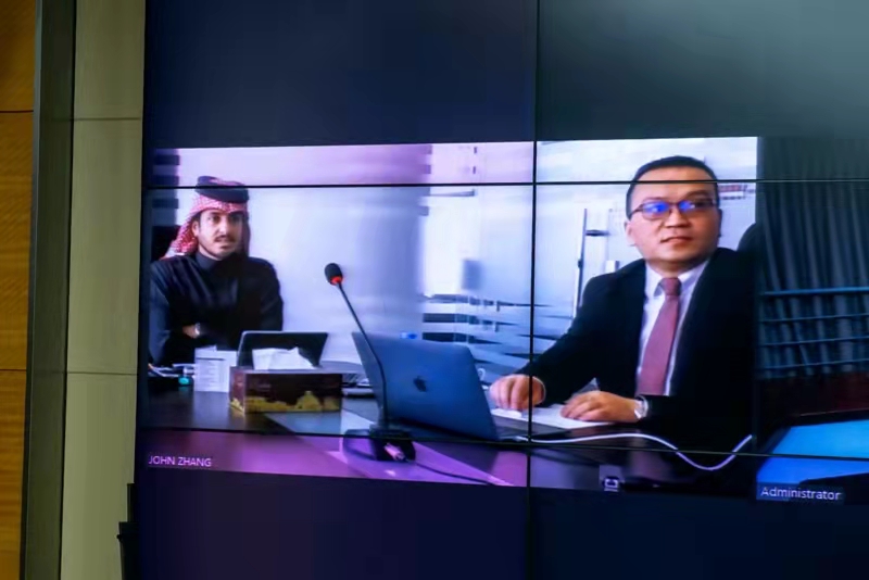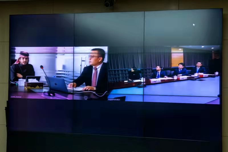 董事長徐鵬強、總裁朱九洲等集團領(lǐng)導(dǎo)與卡塔爾扎伯王爺舉行視頻會議