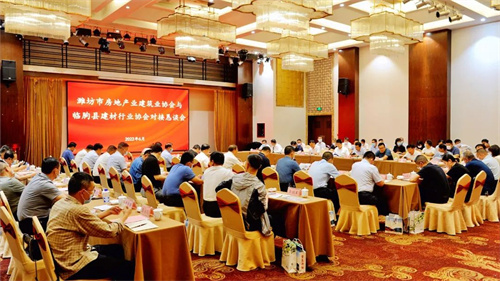 2022年6月11日,濰坊市房地產(chǎn)業(yè)協(xié)會、濰坊市建筑業(yè)協(xié)會與臨朐縣建材行業(yè)協(xié)會對接懇談會在臨朐縣攬翠湖酒店舉行。濰坊市建筑業(yè)發(fā)展服務(wù)中心副主任丁士剛,濰坊市房地產(chǎn)業(yè)協(xié)會會長、集團董事長徐鵬強,濰坊市建筑業(yè)協(xié)會會長、集團總工程師房海,臨朐縣委副書記、縣長陳誠,縣委常委、辦公室主任王磊,副縣長董樹華,市房協(xié)副會長單位和市建協(xié)副會長單位20余位負責人,臨朐縣相關(guān)部門負責人出席對接懇談會。