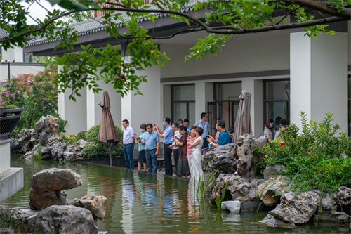 該第16期行業(yè)協(xié)會、商會諸位會長、秘書長在集團公司期間,先后參觀了集團企業(yè)展廳、建筑史館、黨建展廊、中頤龍湖康養(yǎng)小鎮(zhèn),深入考察了解了集團公司的發(fā)展,對集團公司的良性發(fā)展給予充分充分肯定和高度評價。在中頤龍湖康養(yǎng)小鎮(zhèn),生活服務總監(jiān)孫玉闖陪同參觀了小鎮(zhèn)已交付的頤園組團、青龍湖公園、頤樂康養(yǎng)中心及頤養(yǎng)洋房樣板間并為大家做詳細講解,對康養(yǎng)小鎮(zhèn)規(guī)劃、建設、運營、康養(yǎng)服務理念及康養(yǎng)服務內(nèi)容等方面有了深入的了解。