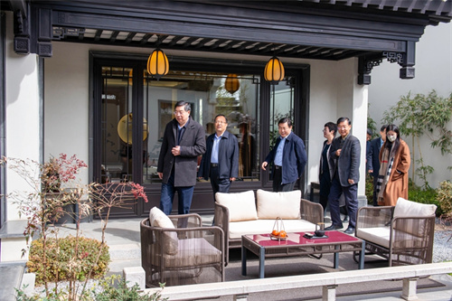 2023年3月25日上午,山東省住建廳廳長(zhǎng)王玉志到集團(tuán)中頤龍湖康養(yǎng)小鎮(zhèn)項(xiàng)目參觀調(diào)研,安丘市委書記賈勤清,市住建局黨組書記、局長(zhǎng)鐘光文、副局長(zhǎng)戴玉霞,集團(tuán)董事長(zhǎng)徐鵬強(qiáng)陪同調(diào)研。王玉志廳長(zhǎng)依次參觀了小鎮(zhèn)服務(wù)中心、頤園中式合院園區(qū)與樣板間、小鎮(zhèn)頤樂(lè)康養(yǎng)中心。聽(tīng)取了小鎮(zhèn)總體規(guī)劃布局匯報(bào),對(duì)中式合院的建筑文化、小鎮(zhèn)宜人的自然環(huán)境以及康養(yǎng)配套運(yùn)營(yíng)方面的精心考量與服務(wù)經(jīng)驗(yàn)給予了高度評(píng)價(jià)。