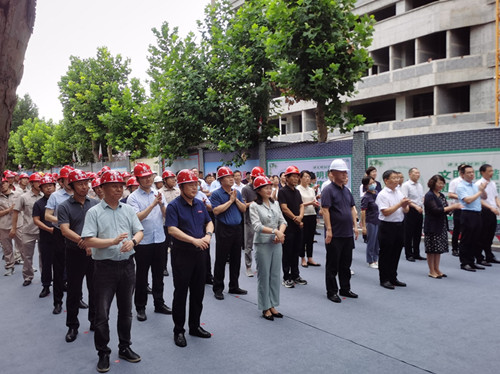 2023年7月25日上午10點18分,由集團四建公司、一建公司分別總承包施工的濰坊市人民醫(yī)院內(nèi)科院區(qū)項目、急救綜合樓項目封頂儀式在內(nèi)科院區(qū)項目現(xiàn)場隆重舉行。 濰坊市人民醫(yī)院黨委書記、院長蘇茂泉,副院長丁硯生等院方領(lǐng)導(dǎo),集團公司董事長徐鵬強、總工程師房海、副總裁吳杰、王建波,濰坊天鵬建設(shè)監(jiān)理有限公司林少杰、濰坊信一項目管理有限公司 姜文玲、山東經(jīng)緯工程管理有限公司孟凡江、山東世紀(jì)華都工程咨詢有限公司劉玉龍等嘉賓出席儀式。 封頂儀式由丁硯生同志主持,蘇茂泉同志宣布“封頂”并與徐鵬強董事長及院方領(lǐng)導(dǎo)共同裝填封頂砼。 參加封頂儀式的還有:集團一建公司總經(jīng)理周光輝,裝飾幕墻公司總經(jīng)理付光文,安裝工程公司總經(jīng)理劉志偉,第二安裝工程公司總經(jīng)理賈德祥、黨支部書記盧啟東,第二裝飾幕墻公司黨支部書記陳鵬、四建公司副總經(jīng)理叢興杰、第三裝飾幕墻公司副總經(jīng)理徐志明以及項目建設(shè)、監(jiān)理、施工方面的員工代表等100余人。(信息來源:劉斌)