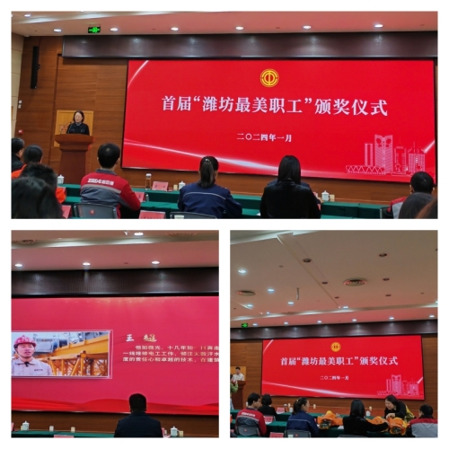 2024年1月19日上午,由市總工會舉辦的首屆“濰坊最美職工”頒獎儀式在濰坊市工人文化宮一樓西區(qū)104會議室隆重舉行。集團公司工會主席穆乃出席頒獎儀式。在首屆10名最美職工中,集團機施公司維修電工王超獲此殊榮。