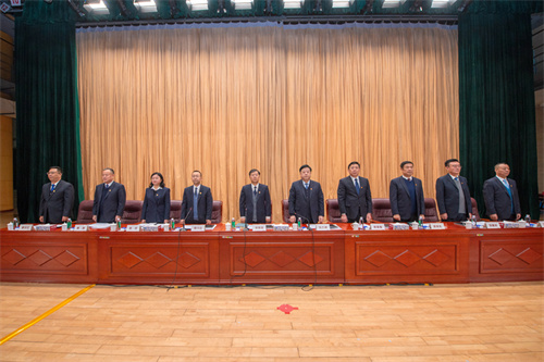 經(jīng)過新一輪改造的工人文化宮穹頂璀璨、銀幕碧華?!罢駣^龍馬精神、實(shí)干再書華章,奮進(jìn)圖強(qiáng)、團(tuán)結(jié)拼搏,拓空間、增優(yōu)勢,以大視野打開大格局!”的大幅標(biāo)語催人奮發(fā)。上午九時,會議準(zhǔn)時開幕。集團(tuán)董事長徐鵬強(qiáng)、總裁朱九洲以及穆乃杰、姜建魯、吳杰、孟憲禮、房海、劉雁冰、惠守江、王建波等高管出席大會并在主席臺就座。集團(tuán)公司第九屆職工代表、列席代表,集團(tuán)公司中層管理人員、2023年度受表彰的先進(jìn)集體代表和先進(jìn)個人以及總部全體人員共319人參加大會。