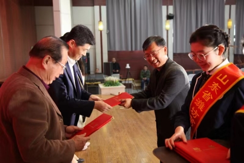 會上,濰坊一中校長張年勇為徐鵬強董事長頒發(fā)了會長聘書,徐鵬強董事長作了當選發(fā)言。隨后,徐鵬強董事長作為新一任會長為顧問代表、常務副會長、副會長代表、秘書長、副秘書長代表頒發(fā)了聘書。