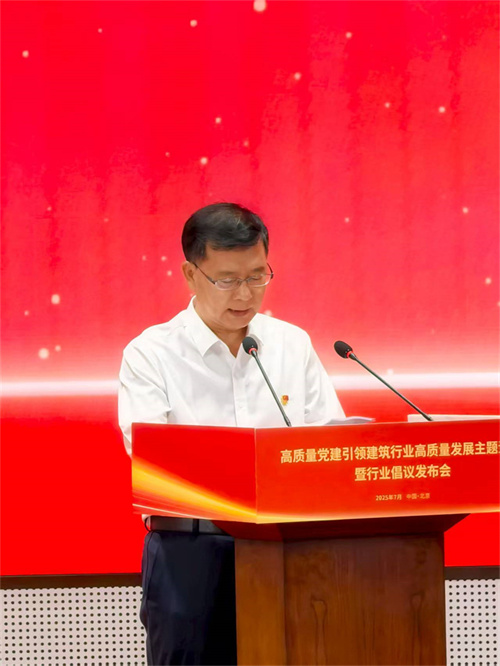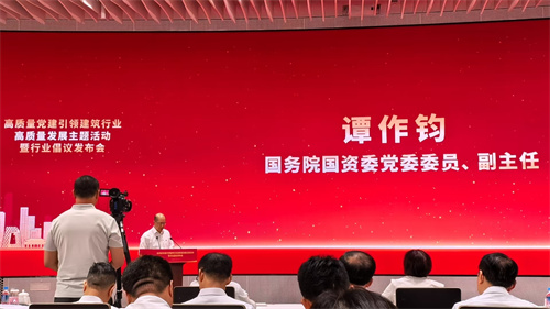 2025年7月7日下午,全國高質(zhì)量黨建引領(lǐng)建筑行業(yè)高質(zhì)量發(fā)展主題活動暨行業(yè)倡議書發(fā)布會在北京中建財富國際中心召開,國務院國資委黨委委員、副主任譚作鈞,全國工商聯(lián)黨組成員、副主席汪鴻雁出席會議并發(fā)表重要講話。集團黨委書記、董事長徐鵬強出席會議并作表態(tài)發(fā)言。