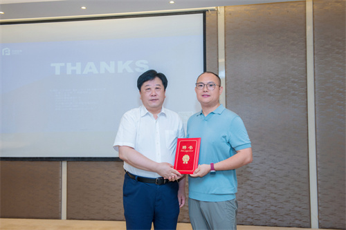 論壇期間,集團(tuán)公司特聘蘇州方石科技有限公司副總經(jīng)理朱海廷為集團(tuán)首席智能建造專(zhuān)家并由總裁朱九洲為其頒發(fā)了聘書(shū)。