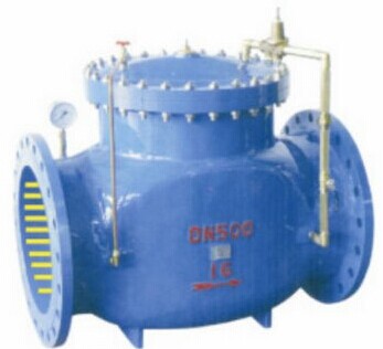 當(dāng)閥門從進口端給水時,水流過針閥進入主閥控制室,出口壓力通過導(dǎo)管作用到導(dǎo)閥上。當(dāng)出口壓力高于導(dǎo)閥彈簧設(shè)定值時,導(dǎo)閥關(guān)閉?刂剖彝V古潘藭r主閥控制室內(nèi)壓力高升關(guān)閉主閥,出口壓力不再升高。當(dāng)閥門出口壓力下降到導(dǎo)閥彈簧設(shè)定壓力時,導(dǎo)閥開啟,控制室向下游排水。由于導(dǎo)閥系統(tǒng)排水量大于針閥的進水量,主閥控制室壓力下降,進口壓力使主閥開啟。在穩(wěn)定狀態(tài)下,控制室進水、排水相同,主閥開度不變,減壓效果明顯。 多噴孔減壓閥特點: 該閥性能穩(wěn)定、安全可靠、安裝調(diào)節(jié)方便,使用壽命長?捎糜谏罱o水、消防系統(tǒng)及工業(yè)給水系統(tǒng)。