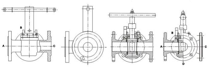 旋塞閥的通道有多種形式。常見的直通式主要用于截?cái)嗔黧w。三通和四通式旋塞閥適用于流體換向。